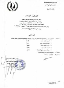 شكل المكتب التنفيذي للاتحاد الرياضي العام بناء على كتاب اللجنة التنفيذية لفرع رياضة ديرالزور مجلس إدارة نادي الشعفة الرياضي والذي تكون من السادة :