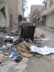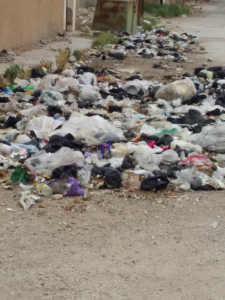 هذه القمامة المنتشرة في الشوارع على سبيل المثال لا الحصر، في شارع الهجانة وشارع مسجد الرحمن وشارع مشفى الهناء وشارع مستودعات الهلال الأحمر اصبحت مع اشتداد الحر بؤرا لكل أنواع الأمراض والجراثيم ناهيك عن الروائح المزعجة والحشرات القارصة التي تسبب بأمراض خطيرة.