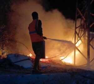 أخماد حريق شب بمحولة كهرباء في بورسعيد عين الفرات في 21 أيلول , 2023 شارك FacebookTwitterWhatsAppTelegramFacebook Messenger أخمده عناصرالدفاع المدني بديرالزور حريقا شب بمحولة كهرباء في شارع بورسعيد ضمن المدينة مساء اليوم الأربعاء، وبحسب الدفاع المدني فقد اقتصرت الأضرار على الماديات ولم تسجل أي إصابة بشرية.