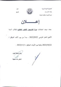 22 الجاري انطلاق امتحانات دورة الخريجين للتعليم المفتوح بجامعة الفرات رئيسيشباب وجامعاتمحليات في 4 تشرين أول , 2023 شارك FacebookTwitterWhatsAppTelegramFacebook Messenger حددت جامعة الفرات موعد امتحانات دورة الخريجين للتعليم المفتوح لطلاب السنة الأخيرة للعام الدراسي 2022/2023 ابتداءا من يوم الأحد الموافق في 22 من الشهر الجاري ولغاية الأول من تشرين الثاني القادم.