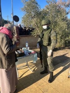 يستمر مركز المصالحه الروسي بحطله بتوزيع المساعدات الإنسانية لاهالي الريف الشمالي بدير الزور