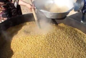 لم يكن الحصاد عبارة عن جني ثمرة تعب الموسم، بل كان عرساً لكل من يشارك به من أهل القرية، كانت ترافقه طقوس مميزة لا تتكرر إلا معه حيث اعتاد أهالي القرية الواحدة التوزع في مجموعات تسمى كل مجموعة “شدة” ويكون توزيع المجموعة محكوماً بقرب أراضي أفرادها، حيث يغادرون منازلهم قبل شروق الشمس أي قبل ما يسمى بالعامية “شفاق” ويأخذون معهم “القرصة” وهي عبارة عن وجبة خاصة تقدم غالباً للحصادين تتألف من الذرة المطحونة والمعجونة مع اللبن، بعد ذلك يبدأ الحصاد الذي يتألف من عدة مراحل أولها الحصاد “بالمنجل” ثم “الغمارة” أي تجميع السنابل بشكل دائري فيما يسمى بالبيدر الذي يكون اتجاه السنابل فيه للداخل، بعد ذلك يأتي “الدراس” ثم “التذرية” أي فصل الحبوب عن “التبن”، وكل ذلك يتم في طقس اجتماعي مميز وعلى صوت “الحداء” حيث تبدأ امرأة أو يبدأ رجل بترديد أغاني الحصاد وفق طريقة تسمى “الحدي”، وللحداء في الحصاد عدة أغراض منها ما يقال لشحذ الهمم، ومنها ما يقال لنسيان العناء، ومنها أيضاً ما يقال عن الحصاد ولكن الغاية الحقيقية ترتبط بالحب، فموسم الحصاد ينتظره الكثير من شباب الريف لأن معظم الزيجات تتم بعد الموسم، وذلك لارتباط الدخل الاقتصادي في الريف بالإنتاج الزراعي، ومن الشعر الذي يعبر عن الفكرة الأخيرة الأبيات التالية: