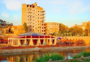 ويتابع صليبي عن ملامح المدينة القديمة: تظهر على النهر بعض المعالم الصنعية التي زال معظمها حتى الآن بفعل عمليات تنظيم مجرى النهر في المدينة، ومما كان قديماً منها الصوايات التي تقع على الضفة اليمنى لنهر الفرات وتتقابل مع رأس الكسر الذي يقع في الطرف الغربي من منطقة الحويقة الحالية، وسمي بذلك لأن المياه تنحرف فيه بسرعة وتنكسر نحو الفرع الكبير الأخفض في العمق، بالإضافة إلى بيوت الجاجان التي تقع على المصطبة النهرية المطلة على نهر الفرات والتي كانت تعرف بمنطقة الصالحية التي بنيت فيها الثكنات العسكرية العثمانية.