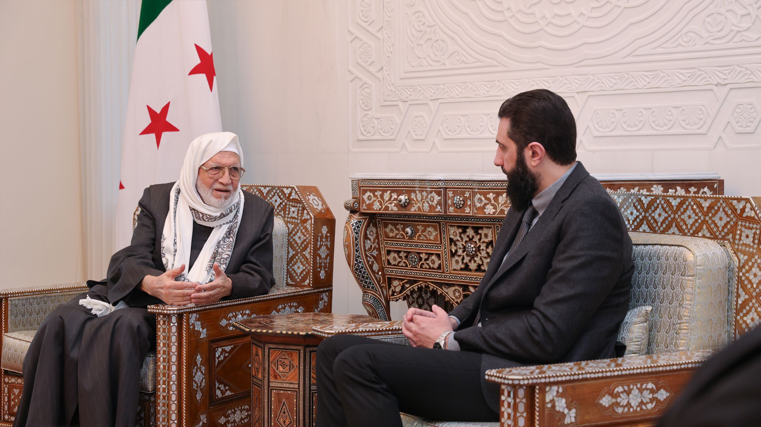 قائد الإدارة السورية الجديدة أحمد الشرع يلتقي الشيخ أسامة الرفاعي رئيسيمحليات في 10 كانون الثاني , 2025 شارك FacebookTwitterWhatsAppTelegramFacebook Messenger التقى قائد الإدارة السورية الجديدة أحمد الشرع مع الشيخ أسامة الرفاعي والوفد المرافق له.