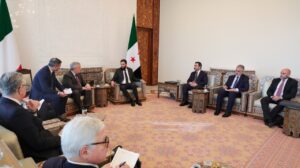 التقى قائد الإدارة السورية الجديدة أحمد الشرع ووزير الخارجية أسعد الشيباني مع وفد من الجمهورية الإيطالية يرأسه وزير الخارجية انطونيو تاجاني.