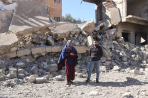 تعب العمر، شقاء السنين، سقف أردت أن أورثه لأطفالي، كل هذا وجدته أشلاء ممزقة، دمرها مجرمو النظام المخلوع في لمحة بصر.. بكلمات تغص في الحلق، مثلها مثل دموعها، عاتبت أم محمد وهي تحيط أطفالها بذراعيها، جدران منزلها وكأن الجدران استسلمت تحت براميل الطاغية المجرم الحقود، لماذا يا جدراني؟ يا من بذلت فيك دمي ودموعي؟