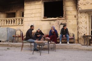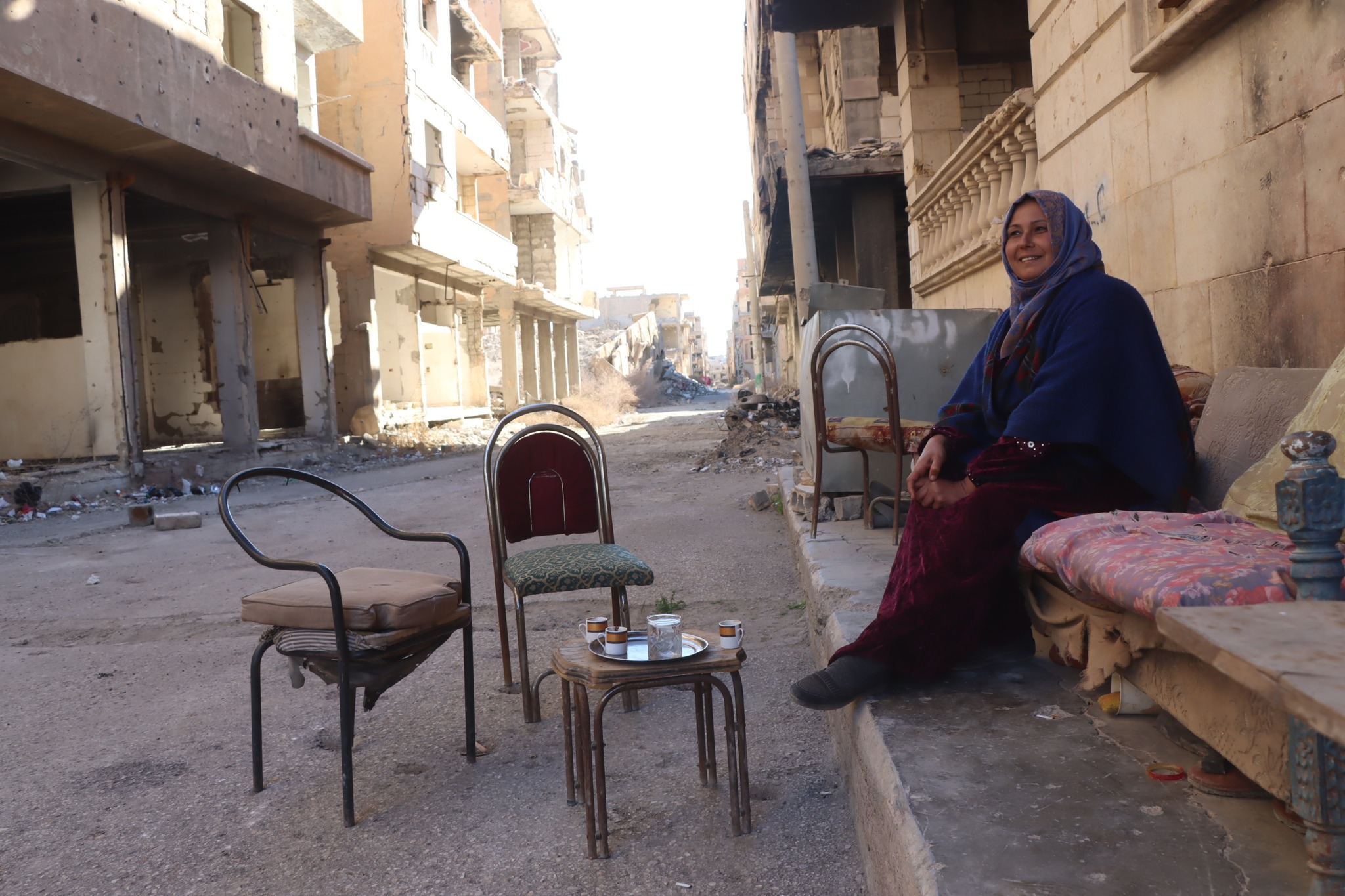 في حي العرضي بدير الزور المدمر بنسبة مئة بالمئة، وكأن من دمره كان حريصاً على محوه من الجغرافيا، جالت أم محمد رفقة أطفالها الشوارع المقفرة إلا من رائحة الغياب، وفي نظراتها مع أولادها لبعض بريق أمل، باستعادة الحياة.