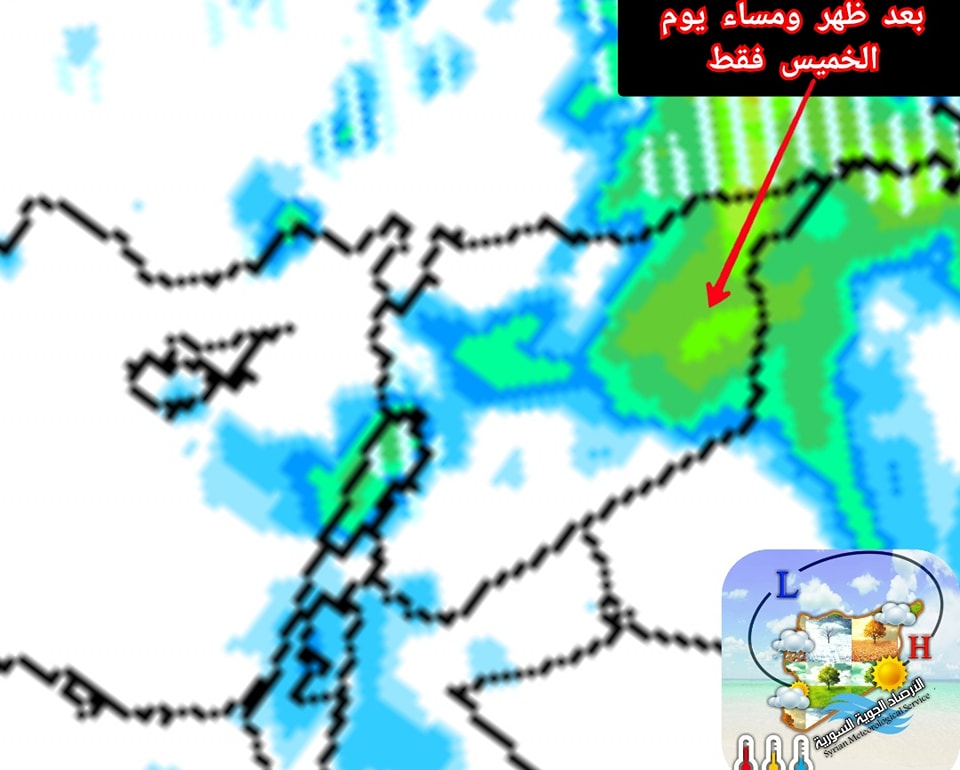 مقدمة المنخفض ستبدأ اليوم الأربعاء خلال ساعات بعد الظهر والمساء والليل بهطولات مطرية متفرقة على المناطق الساحلية والشمالية الغربية ستكون بعضها مصحوبة بالعواصف الرعدية على السواحل وقد تتشكل خلايا ماطرة محدودة شمال شرق البلاد.
