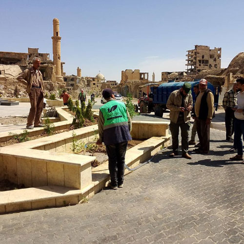 وبين مصدر في الدفاع المدني أنه ترحيل الركام في محيط الساحة وغسلها وتنظيفها وزراعة الاشجار وغراس الزينة في احواض زراعية ، وبذلك لبست الساحة ثوبا جديدا ومنظرا يليق بها .