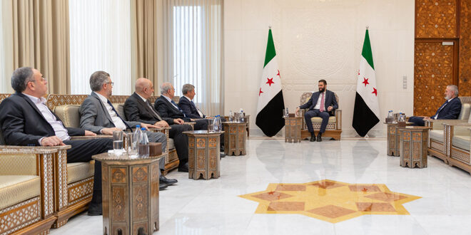 استقبل رئيس الجمهورية السيد أحمد الشرع في قصر الشعب بدمشق عدداً من رجال الأعمال السوريين المقيمين في جمهورية مصر العربية.