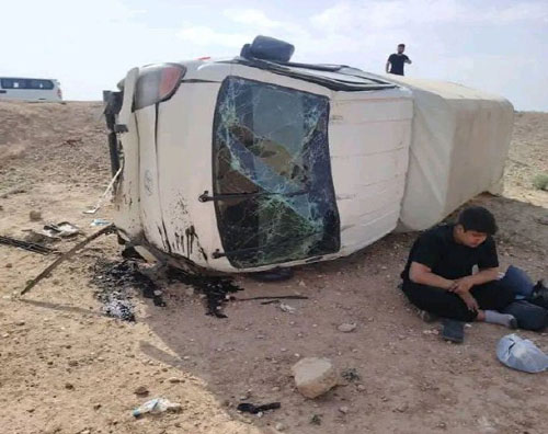 أصيب شاب بجروح طفيفة إثر انزلاق سيارته وتدهورها قرب دوار البانوراما، جنوب مدينة الحسكة، كما لحقت أضرار مادية بالسيارة.