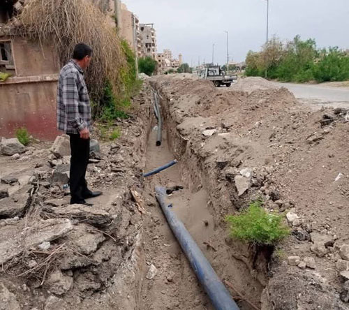 باشرت المؤسسة العامة لمياه الشرب والصرف الصحي بدير الزور بالتعاون مع منظمة GVC الدولية تنفيذ مشروع إعادة تأهيل عدد من خطوط المياه في مدينة ديرالزور