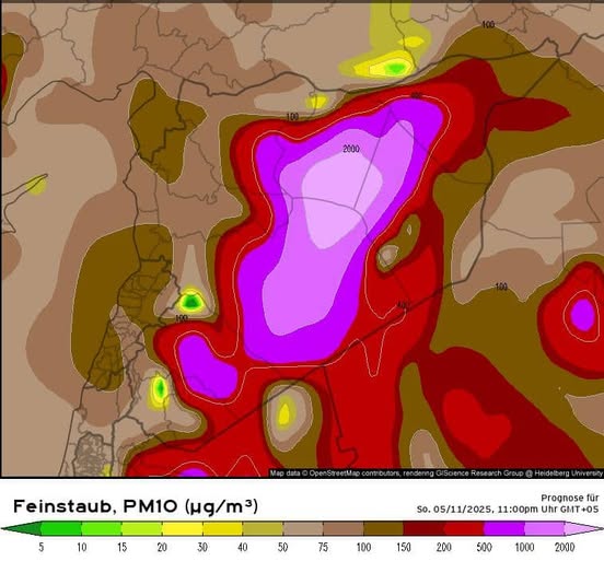 تشير التوقعات الصادرة عن المراكز العددية إلى حركة رياح نشطة إلى قوية، تبدأ على عموم المناطق السورية خلال الساعات القادمة متسببةً بأجواء سديمية مغبرّة قليلاً إلى سديمية على المناطق الساحلية والداخلية، في حين يتوقع أن تشهد أجزاء واسعة من #ديرالزور و #الرقة و #الحسكة مع المناطق الشرقية لمحافظة #حمص أجواء سديمية مغبرّة، وتشير التوقعات إلى أن فرص تشكّل عواصف غبارية كثيفة متاحة مساءً اليوم الأحد 11 أيار خاصةً على الأجزاء الجنوبية والشرقية لمحافظة #الرقة وجنوب الحسكة وأجزاء واسعة من دير الزور، إضافةً لأجزاء من وسط وشرق حمص
