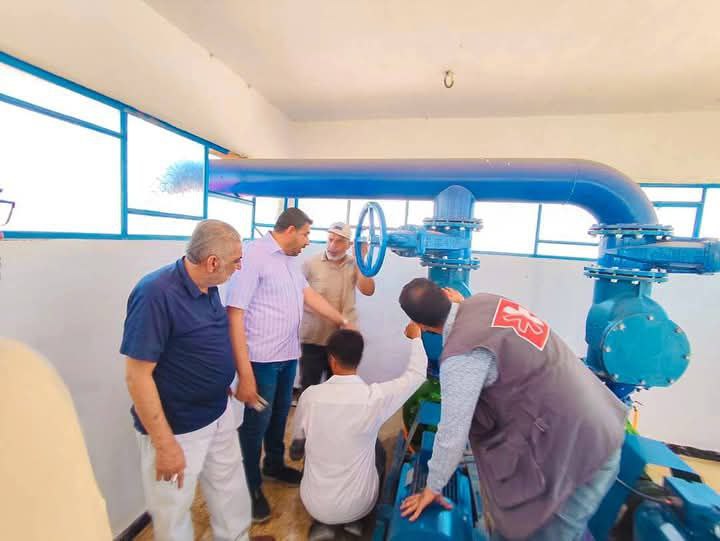 المحطة التي تعمل بطاقة انتاجية 160 م3سا تم إعادة تأهيلها من خلال تركيب مجموعات ضخ خامية وصافية وصيانة الفلاتر المعدنية وتزويدها بمنظومة طاقة شمسية