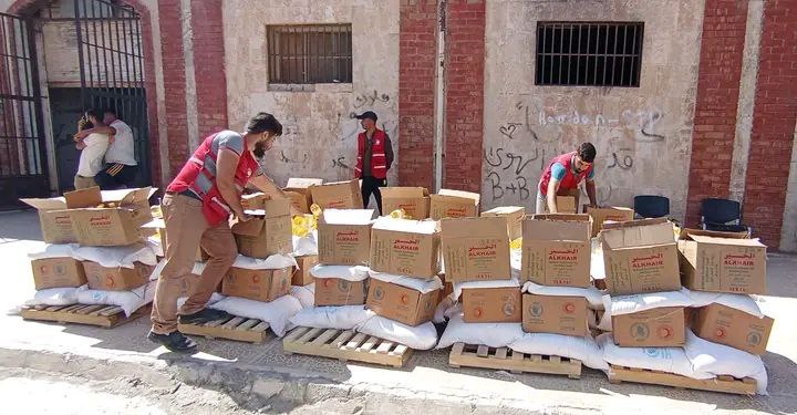 بإشراف مديرية الشؤون الاجتماعية والعمل بتوزيع سلال غذائية للمستفيدين من ذوي الإعاقة ومرضى السرطان والأرامل والمطلقات في منطقة الضاحية بمدينة ديرالزور.