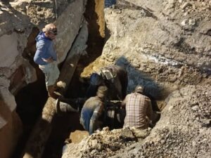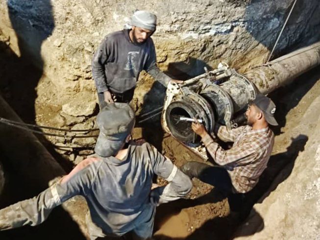 تواصل المؤسسة العامة لمياه الشرب بديرالزور بالتعاون مع منظمة GVC تنفيذ مشروع استبدال خط المياه الرئيسي في شارع الانطلاق القديم قطر 315 مم في المنطقة الممتدة من كلية العلوم وحتى مشفى السلوم.