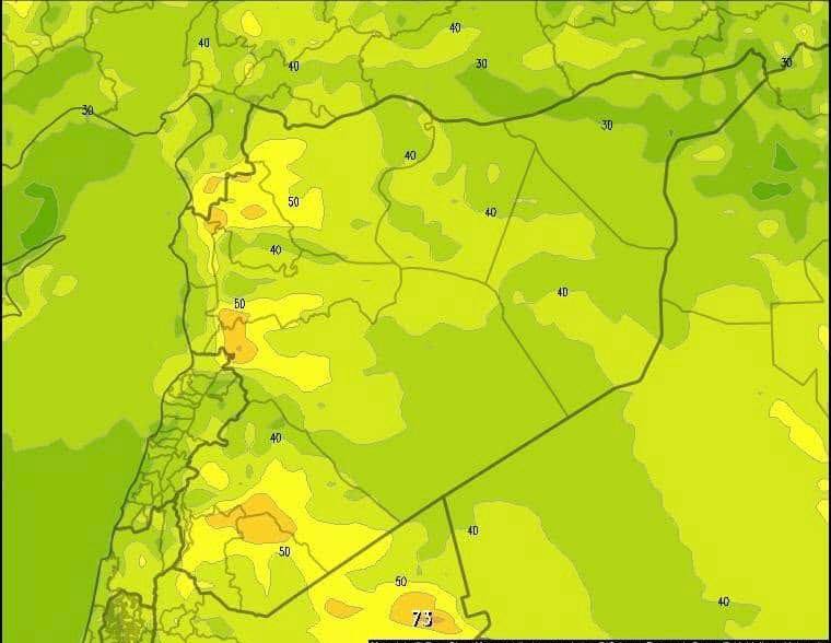 تتحرك الرياح بصورة غربية نشطة عند 30 كم/ ساعة تترافق بهبات نشطة إلى قوية تتراوح ما بين 45 و55كم/ ساعة، وتؤدي حركة الرياح النشطة والقوية لإثارة الأتربة والغبار على المناطق الشرقية والجزيرة لتتحول الأجواء إلى سديمية مغبرة على تلك المناطق