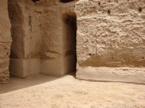 يحيط بهذا القصر سور بارتفاع أكثر من ستة أمتار من جوانبه الثلاثة الغربي والجنوبي, مُشيد من اللبن وتتوسطه باحة مربعة الشكل تؤدي بواسطة معبدين إلى قاعة كبيرة. وللباحة ستة أبواب أخرى لسهولة الحركة والتنقل إلى الأقسام الأخرى