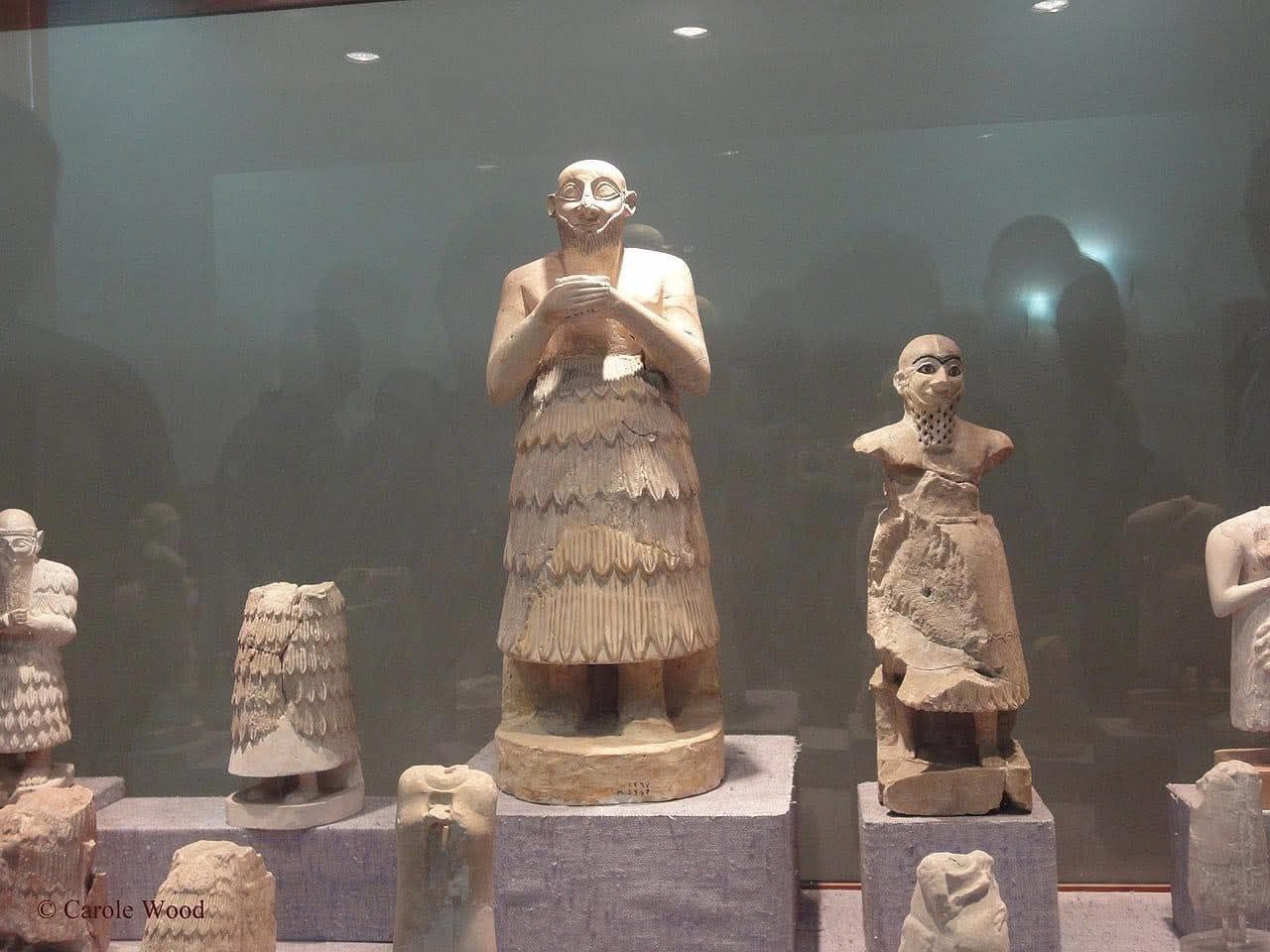 نحتت هذه التماثيل بحيوية وواقعية تجاوزت مثيلاتها الرافدية، ويؤكد الطابع الديني لتلك التماثيل هو تلك الكتابات التي نقشت عليها وتحمل أسماء أصحابها والآلهة المهداة إليها. وقد صنعت هذه التماثيل من الحجر الكلسي المحلي.