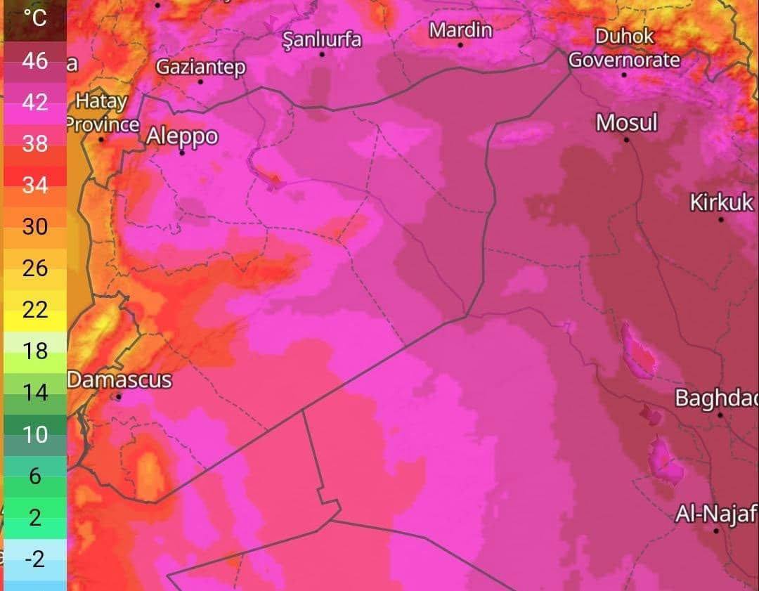 كتلة هوائية حارة سيستمر تأثيرها على البلاد حتى نهاية الأسبوع الحالي ومطلع الأسبوع القادم، تفرض طقساً حاراً على عموم المناطق السورية، مع درجات حرارة أعلى من معدلاتها بنحو 3 إلى 6 درجات.