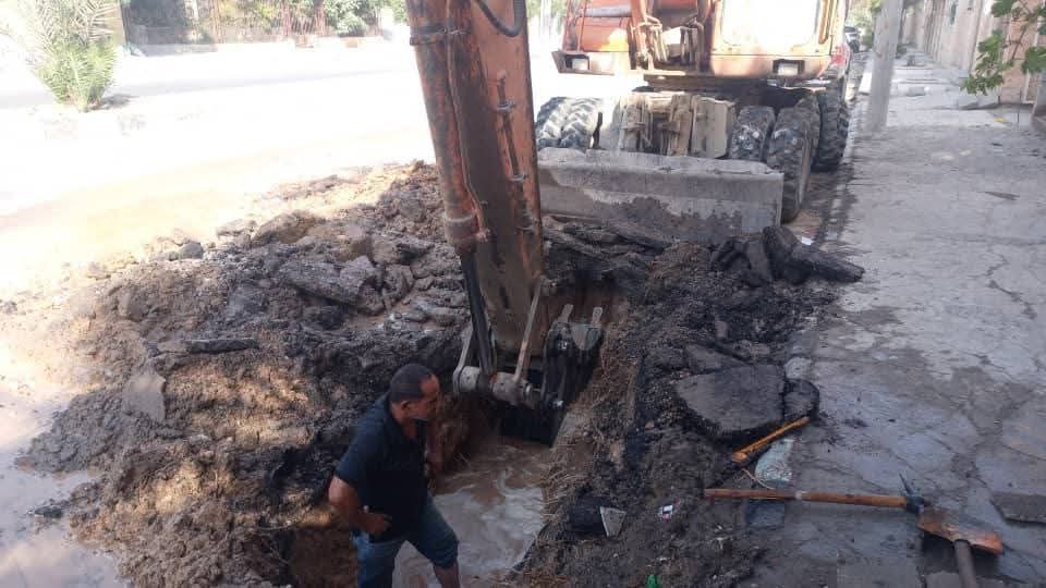 حيث قامت الورشة الفنية بالكشف عن الخط الرئيسي في المنطقة وعدد من الخطوط الفرعية و تبين وجود كسر في خط فرعي تم إصلاحه وعاد ضخ المياه إلى ما كان عليه سابقاً.