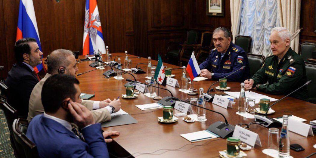 التقى وزير الدفاع اللواء المهندس مرهف أبو قصرة ووزير الخارجية والمغتربين أسعد حسن الشيباني ورئيس الاستخبارات العامة حسين سلامة وزير الدفاع الروسي أندريه بيلوسوف في العاصمة الروسية موسكو.