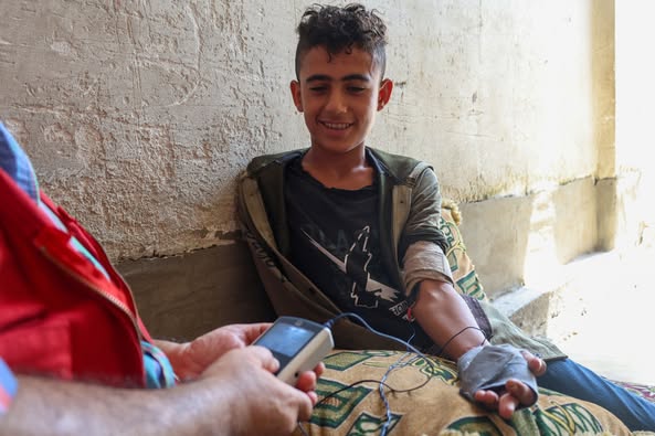 حين بدأت رحلة العلاج الفيزيائي مع منظمة الهلال الأحمر العربي السوري، ومع كل جلسة تنبيه كهربائي وتمرين، كانت يده اليسرى تستعيد بعض الأمل، حتى عادت للحركة مجدداً، بفضل الله عز وجل.