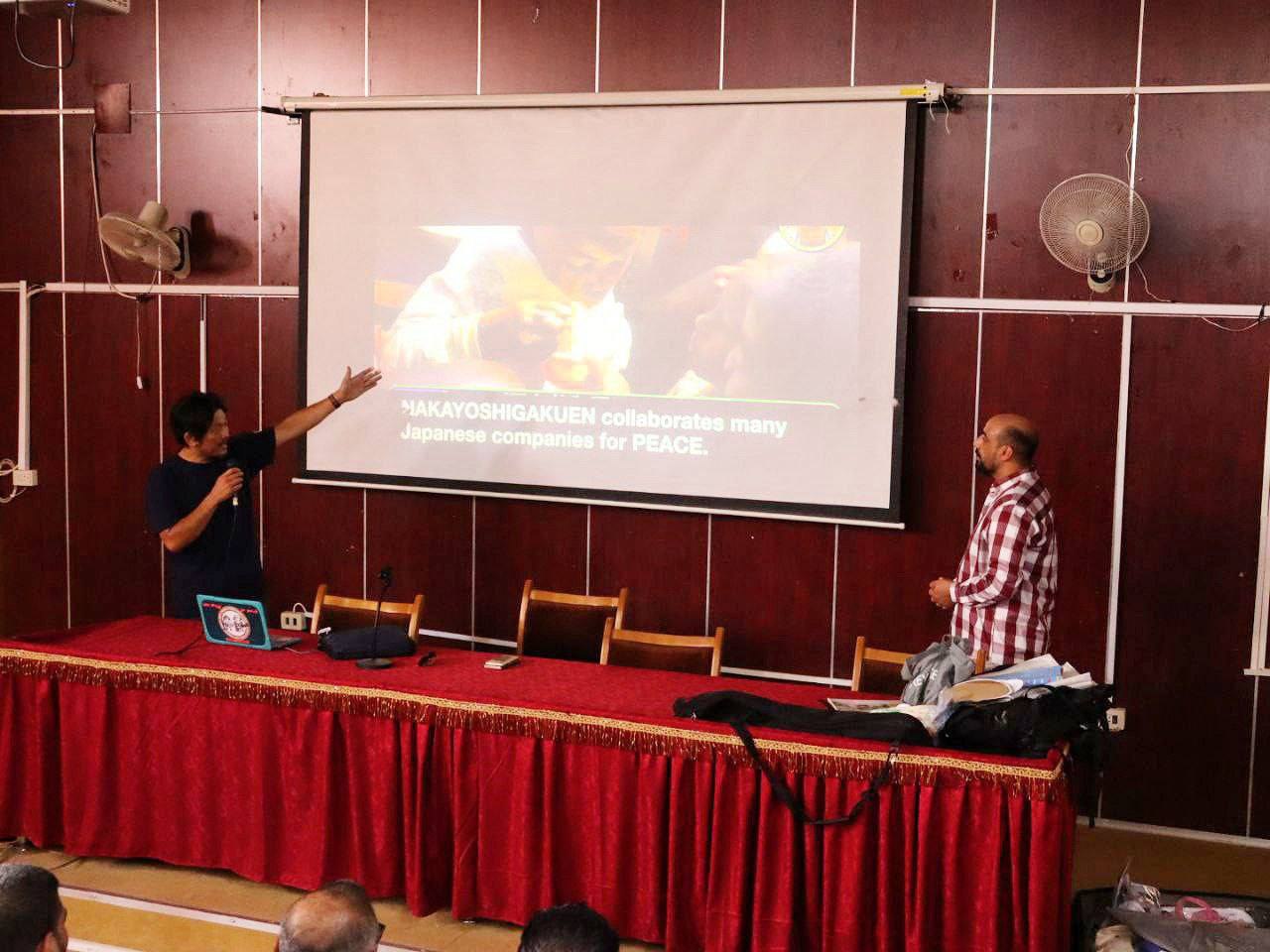 وعقب الجولة ألقى السيد ناكامورا محاضرة على مدرج ابن البيطار في كلية الهندسة الزراعية، تناول خلالها تجربة اليابان في التعافي وإعادة البناء بعد الحرب العالمية الثانية، مستعرضا نماذج من الحلول والبرامج التي تم تطبيقها في ظروف مشابهة لما تمر به مدينة دير الزور.