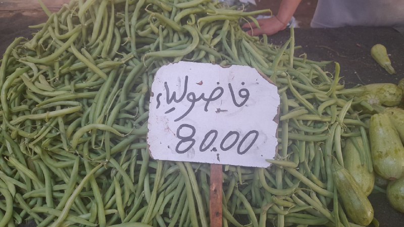 الفرات رصدت خلال جولتها في أسواق مدينة دير الزور أسعار بعض أنواع الخضار حيث يباع كيلو البامياء بين ٨ و١٠ آلاف ليرة، وكيلو البطاطا بين ٤ و٥ آلاف ليرة، والفاصولياء بين ٧ و٩ آلاف ليرة، والكوسا بحدود ٣ آلاف ليرة، والفليفلة بين ٣ و٤ الاف ليرة، والبصل بين ٢٥٠٠ و٣ آلاف ليرة، والخيار والبندورة بحدود ٣ آلاف ليرة والباذنجان بين ١٠٠٠ و١٥٠٠ ليرة .