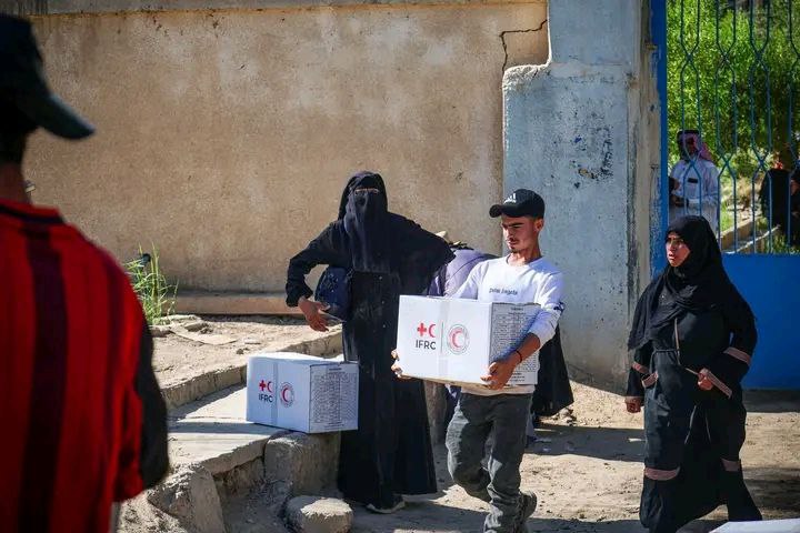 كما وزع متطوعو الهلال الأحمر في مدينة الميادين وبلدة بقرص تحتاني بريف دير الزور الشرقي أكثر 250 حصة غذائية، وذلك بدعم من الاتحاد الدولي لجمعيات الصليب الأحمر والهلال الأحمر ، بهدف تلبية احتياجات العوائل العائدة إلى محافظة دير الزور