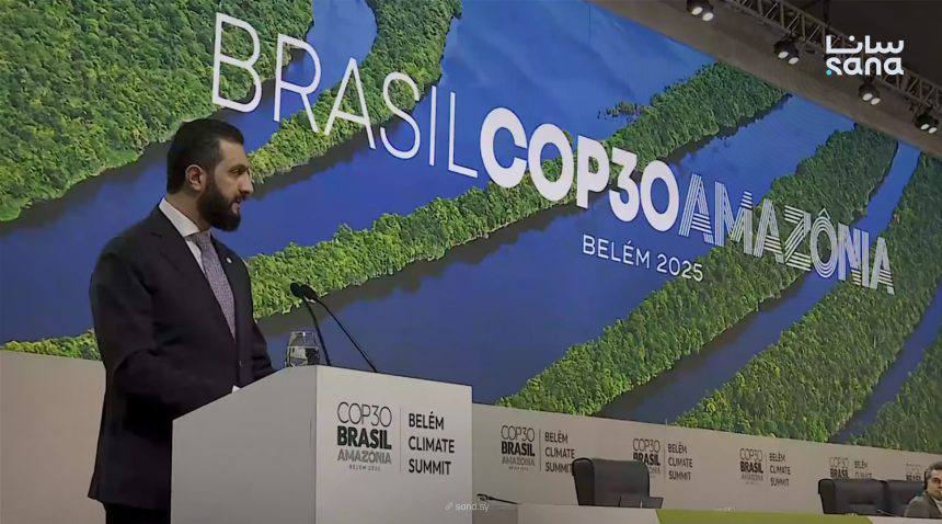 ألقى رئيس الجمهورية العربية السورية أحمد الشرع كلمة خلال فعاليات قمة رؤساء الدول والحكومات في مؤتمر قمة المناخ (COP30) بمدينة بيليم البرازيلية ، وجاء فيها: