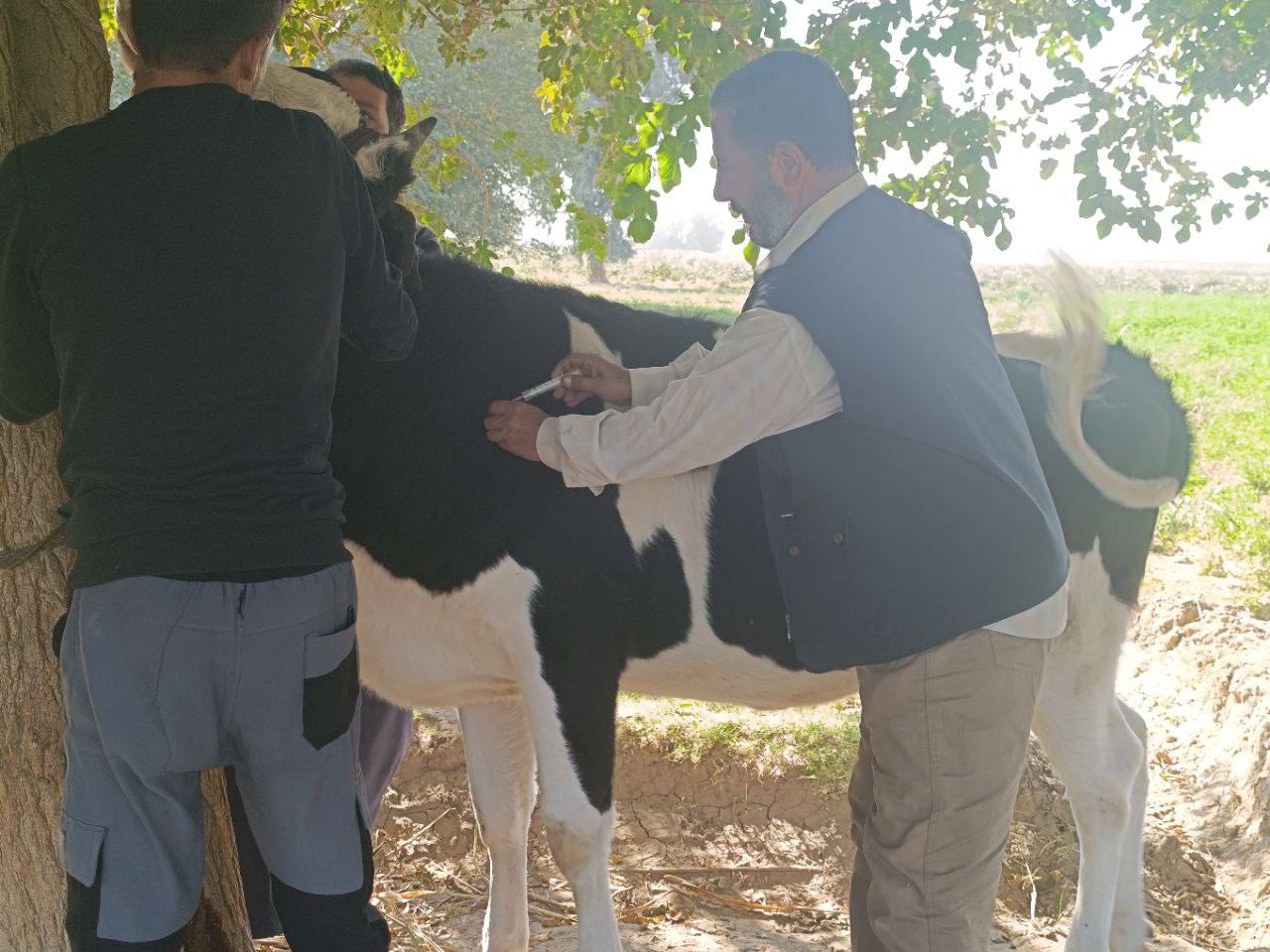 وفي السياق ذاته، تابع المدير أعمال حملة تحصين الأبقار ضد مرض الحمى القلاعية، في بلدة محكان، والتي تُنفذ مجاناً مرتين سنوياً بهدف الحد من انتشار الأمراض الوبائية وحماية الثروة الحيوانية، حيث تم تحصين عدد من الأبقار، ضمن آلية تعتمد على توزيع اللقاحات عبر الوحدات الإرشادية الزراعية.