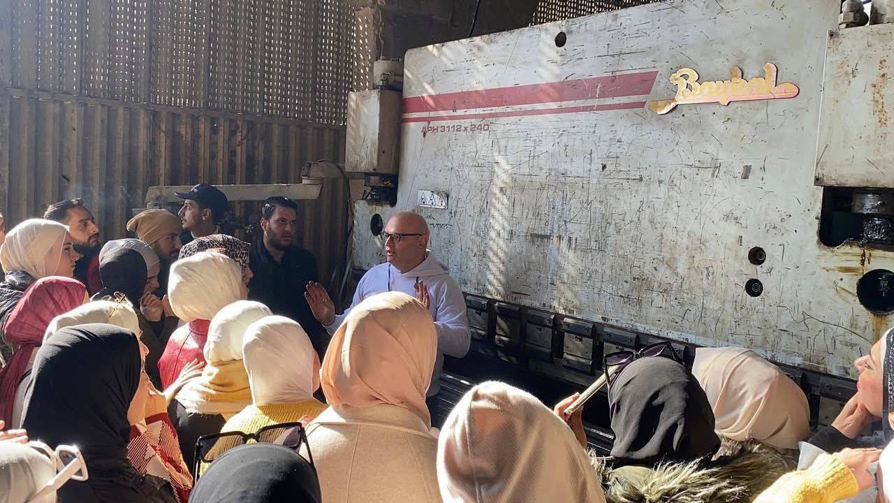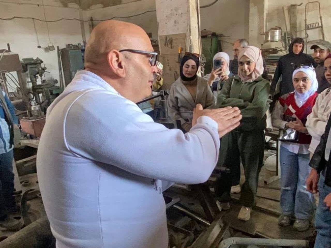 وشارك في الزيارة كلٌّ من عميدة الكلية الدكتورة “جيداء العلوش” ورئيس الدائرة الهندسية المهندس “معاذ الجوري”، إضافة إلى الدكتور “رامي محمد” الذي قدّم شروحاً وافية حول الآلات والتجهيزات الموجودة في الورش الصناعية، بدعم وتعاون من الصناعيين القائمين عليها.
