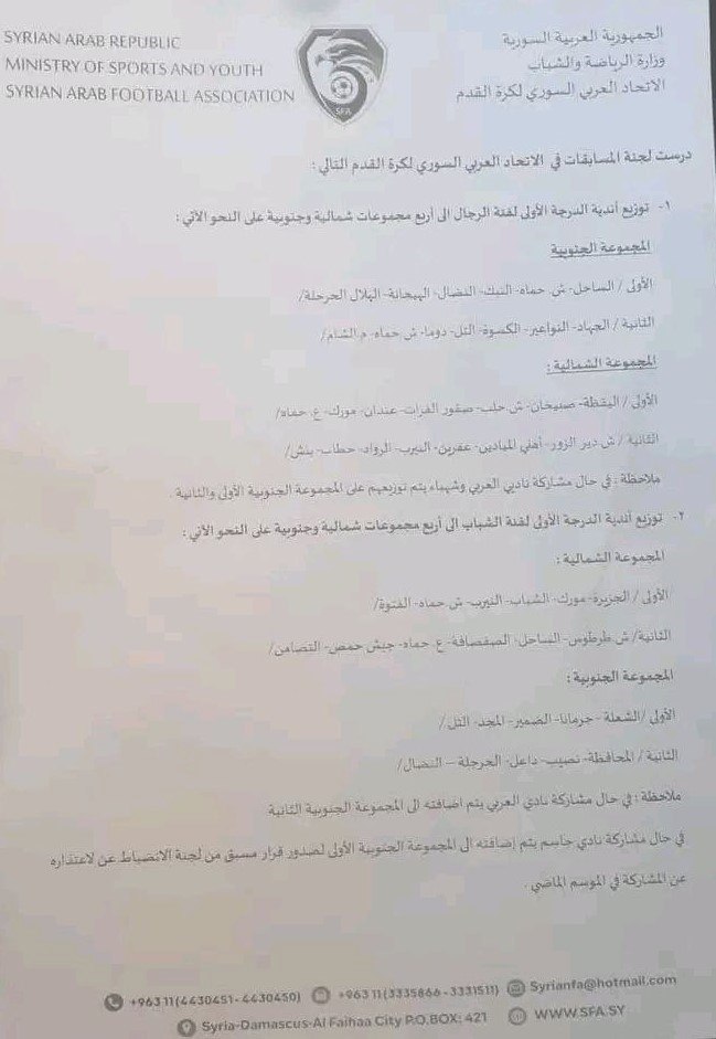 حيث تم تقديم كتاب رسمي من الأندية الأربعة إلى رئيس اتحاد كرة القدم السوري السيد فراس تيت من اجل انصافهم ووضعهم في مجموعة واحدة وإقامة المباريات في ديرالزور.