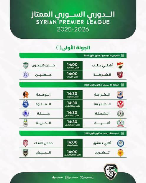 تنطلق اليوم الخميس مباريات المرحلة الأولى من الدوري السوري الممتاز بكرة القدم والتي تشهد مواجهات هامة لكافة الفرق على اعتبار ان المواجهة الأولى تكون بوابة العبور الأهم والمدخل لتحديد مسار الفريق .