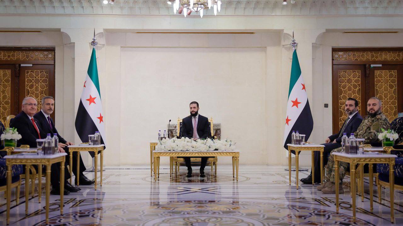استقبل الرئيس أحمد الشرع اليوم في قصر الشعب بدمشق، وفداً تركياً ضم وزير الخارجية هاكان فيدان، ووزير الدفاع يشار غولر، ورئيس جهاز الاستخبارات العامة إبراهيم كالن.