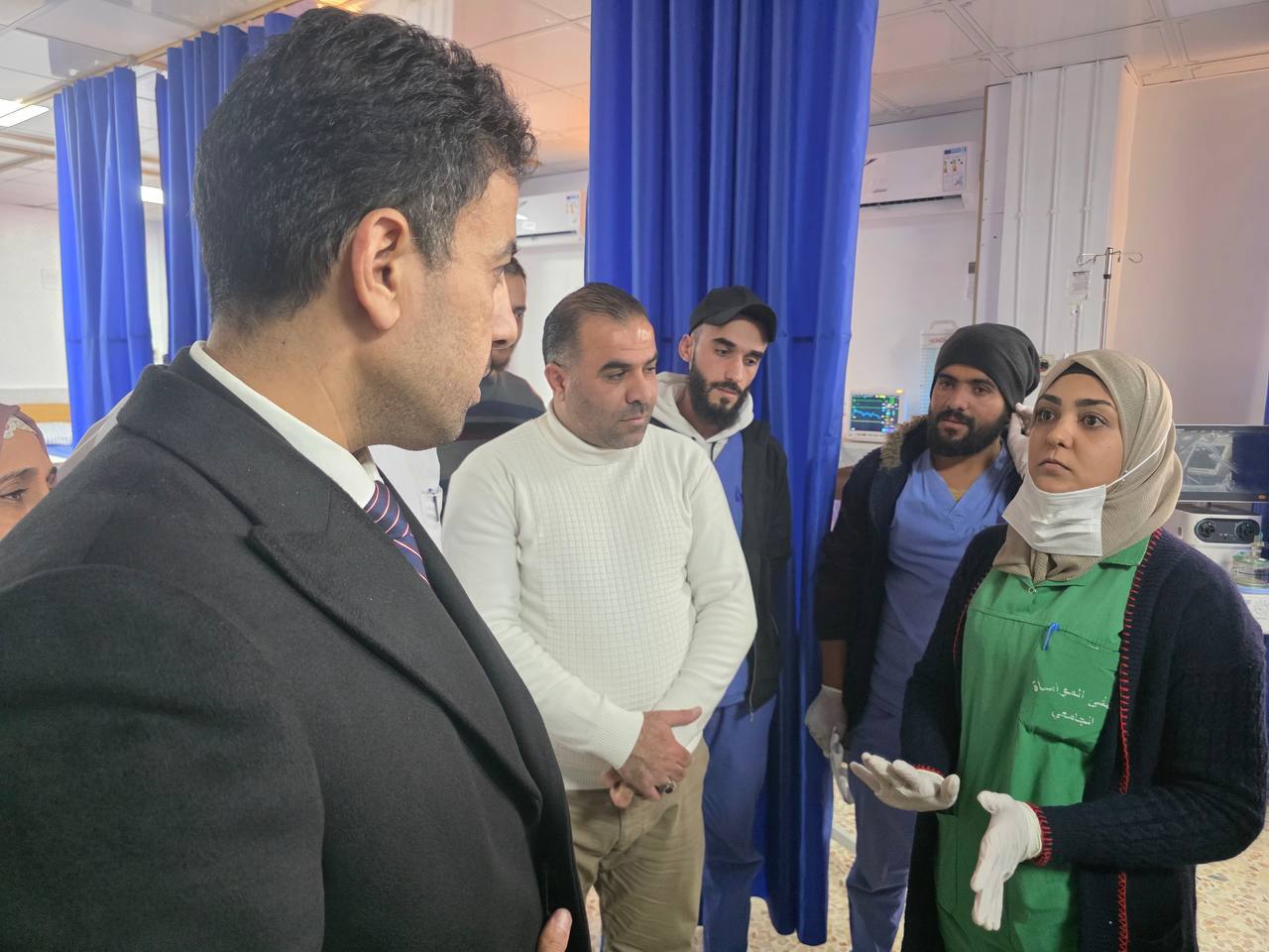 أجرى وزير الصحة الدكتور مصعب العلي، برفقة مدير صحة دير الزور الدكتور يوسف السطام، ونقيب الأطباء الدكتور نصر علوان، جولةً تفقدية إلى مشفيي دير الزور الوطني والهويدي، اطلع خلالها على واقع الخدمات الطبية المقدَّمة وسير العمل في الأقسام المختلفة. كما استمع الوزير إلى مطالب المراجعين واحتياجاتهم الصحية، بهدف تحسين مستوى الخدمة الصحية المقدَّمة لأهالي المحافظة.