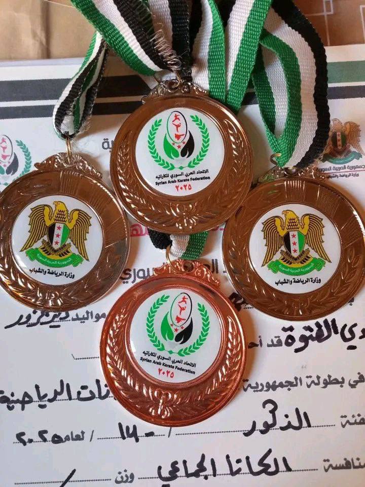 كما أحرز منتخب ديرالزور للإناث الميدالية البرونزية بالكاتا الجماعي بفئة ـ 16 عاماً
