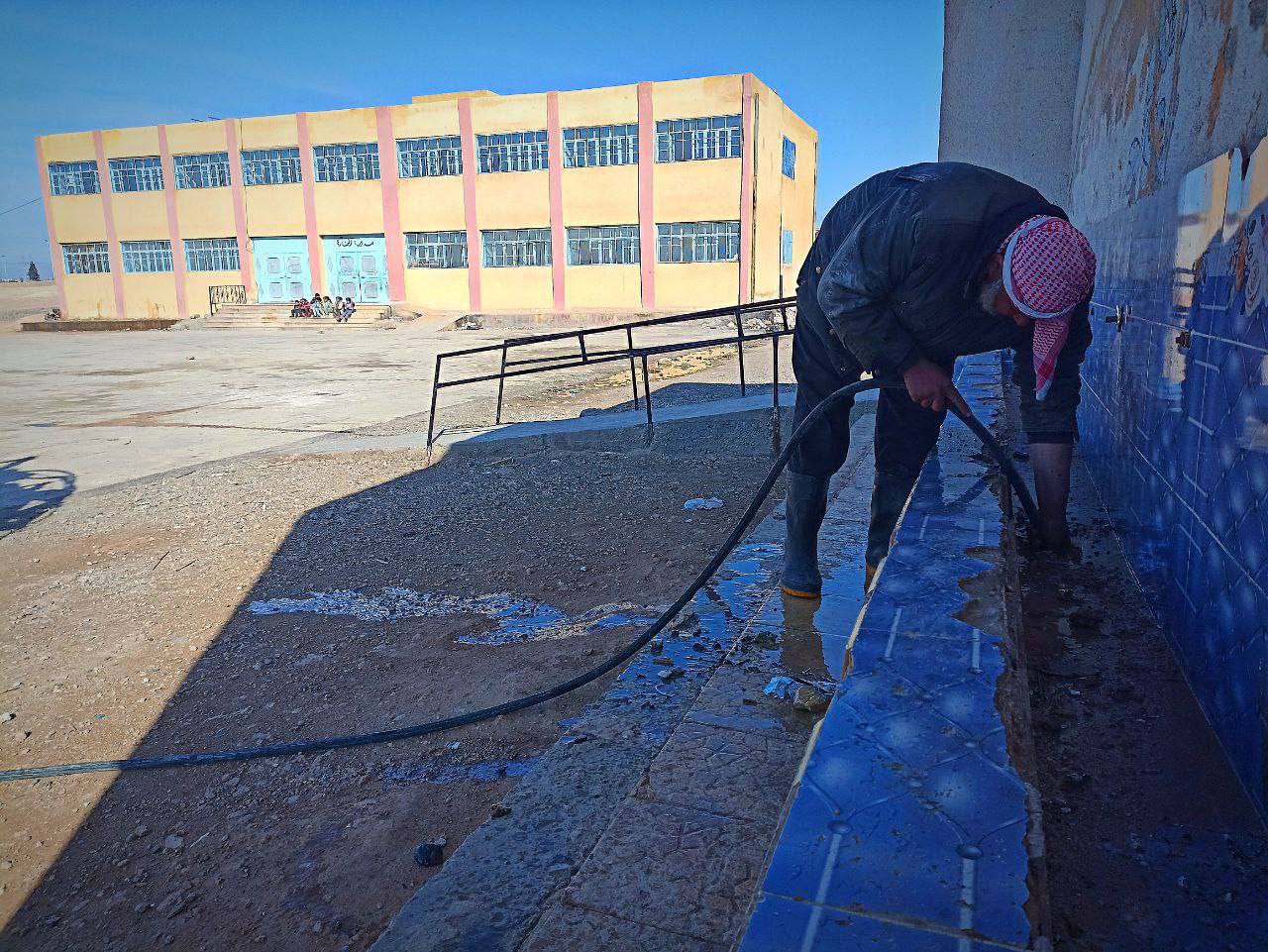تواصل دائرة الصرف الصحي في مجلس مدينة الطبقة أعمال إعادة تأهيل وصيانة الشبكات في عدد من مدارس المدينة التي استخدمت سابقاً كمراكز إيواء.