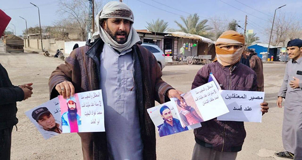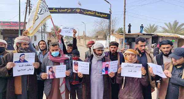 خرجت مظاهرة في مدينة الشحيل وفي بلدة أبو حمام بريف دير الزور الشرقي، تطالب الحكومة السورية بالكشف عن مصير أبنائهم المعتقلين والمغيبين من قبل تنظيم “قسد”.