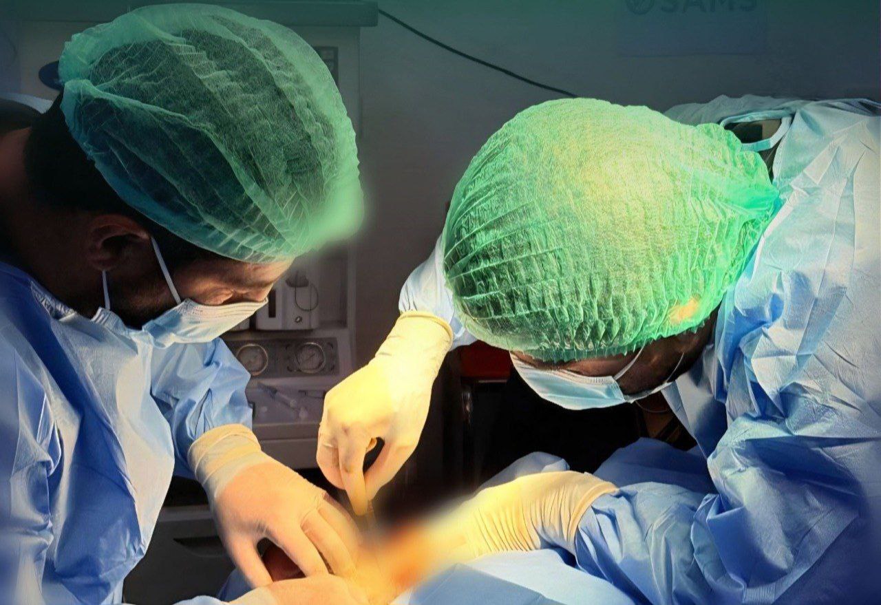 وأجرى الفريق الجراحي المشترك عملية فائقة الدقة لإزالة القيلة الدماغية عبر عزل العناصر العصبية والوعائية وتحريرها عن الأم الجافية والجلد، ثم إغلاق الأم الجافية والجلد وفق المعايير الجراحية المعتمدة.