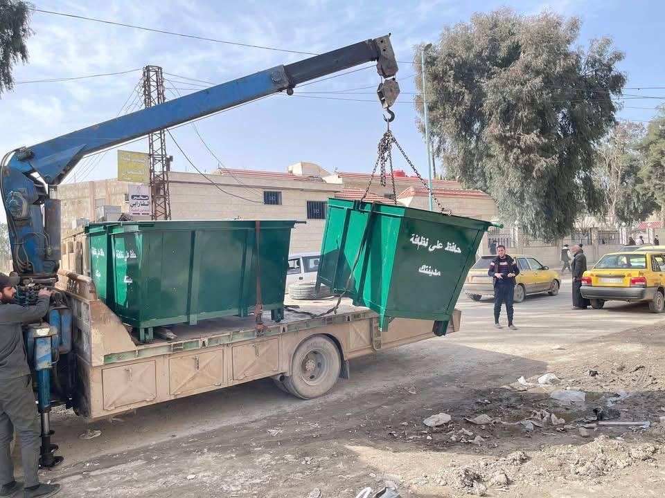 ضمن حملة “ركتنا جنتنا” ومتابعة لخطة مجلس مدينة الرقة الهادفة لتعزيز الواقع الجمالي والخدمي في الرقة، باشرت الورشات المختصة توزيع حاويات نفايات جديدة لاستبدال التالف منها ورفد القطاعات التي تعاني نقصاً، وشمل التوزيع جانب حديقة البستان ونزلة المتحف، ومحيط المشفى الوطني، إضافة إلى نزلة ابن خلدون وجانب حديقة الرشيد.