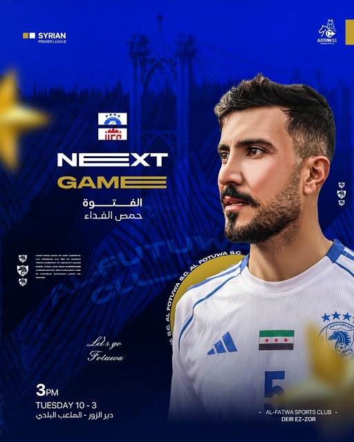 يخوض نادي الفتوة مباراته القادمة في إطار منافسات الدوري السوري الممتاز أمام فريق حمص الفداء، وذلك يوم غداً الثلاثاء، في الساعة الثالثة ظهراً على أرض ملعب دير الزور البلدي.