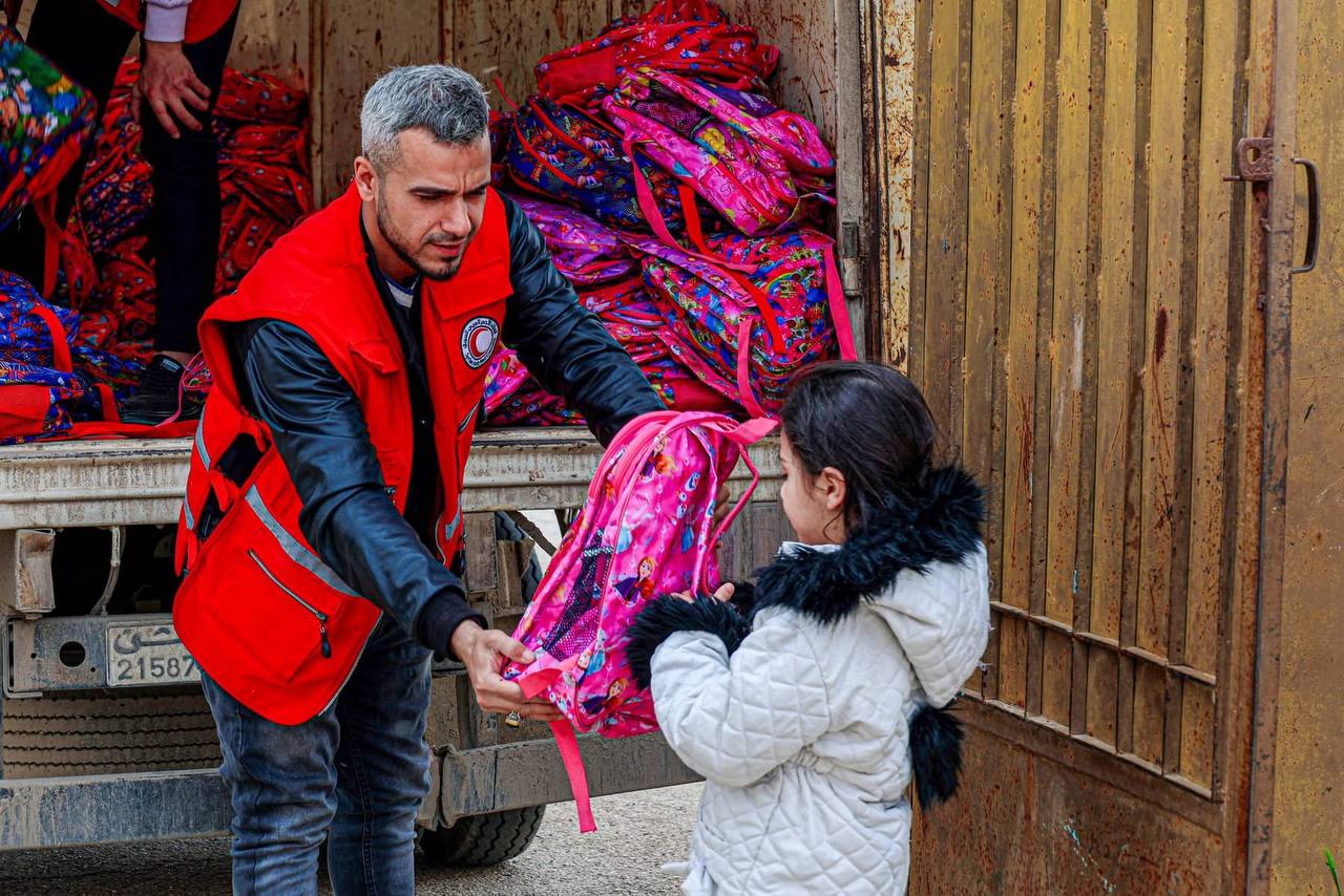 ضمن إطار تعزيز دعم التعليم وتشجيع الأطفال على العودة إلى المدرسة، وزّع متطوعو الهلال الأحمر العربي السوري 5625 حقيبة مدرسية على طلاب 27 مدرسة في مدينة دير الزور وبلدات العشارة، مراط، حطلة، والبغيلية.