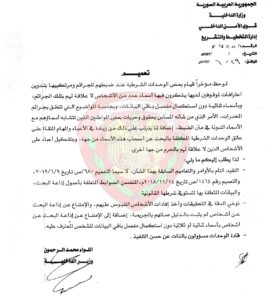 ودعا التعميم إلى التقيد التام بالأوامر والتعاميم السابقة بهذا الشأن المتضمن الضوابط المتعلقة بأصول إذاعة البحث والبيانات المتعلقة بها لتستوفي شروطها القانونية.