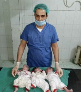 وضعت سيدة من بلدة الغريبة بريف دير الزو ر الشرقي ثلاثة توائم إثر عملية ولادة قيصرية .