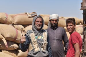 سواعد سمراء تردفها سواعد سمراء أخرى، سواعد لوحتها الشمس في حقول القمح تزرع كي تحصد، أكف خشنة بلون التراب الطاهر، لتأتي أكف خشنة قوية تحمل أرزاق الناس إليهم وتضع أرغفة الخبز على موائدهم، قال الرسول الكريم وقد صافح يداً خشنة : (هذه يد يحبها الله ورسوله)، الصور من صباح الهمة والنشاط والأمل بالعمل من ريف الرقة المحرر.