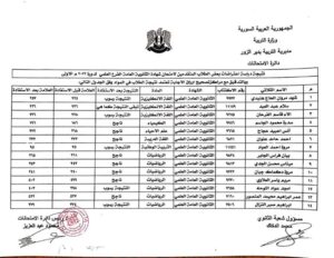 أعلنت مديرتا التربية في محافظتي دير الزور والرقة عن قوائم الطلاب المستفيدين من الاعتراضات المقدمة على نتائج الثانوية العامة للدورة الأولى لعام 2022.