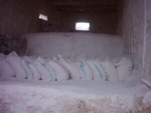 بعد أن تنتهي عملية فخر الصخر الكلسي الأبيض تطفأ النار، وتترك الأحجار فوق القبة لمدة يوم كامل كي تبرد، ومن ثم يجمع ويوضع بالزنابيل، ويؤخذ لطاحونة الحجر، فينزل بشكل مطحون مباشرة من مزريب الطاحونة، إلى المستودع . بعد ذلك يعبأ بالشنابل، ويباع لأصحاب المهنة.