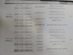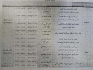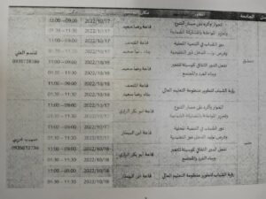تبدأ من الساعة التاسعة حتى 1.30 وفق الأماكن والمحور المرفقة في الجداول الاتية: